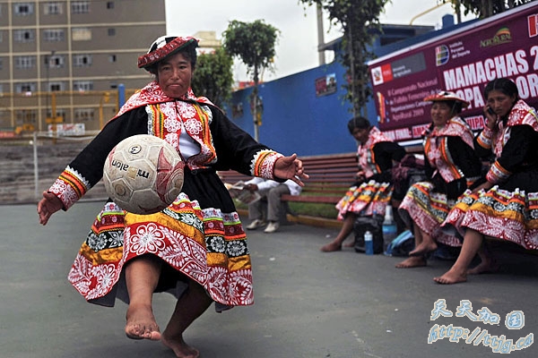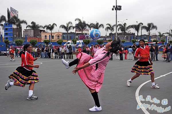 12月12日,秘鲁印第安妇女在利马国家体育场外举办了一场特别的足球赛,所有的球员均身着传统服饰光脚上阵妙趣横生。