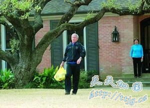布什卸任搬到家乡后生活与普通人一样,经常被劳拉打发上街买杂物。