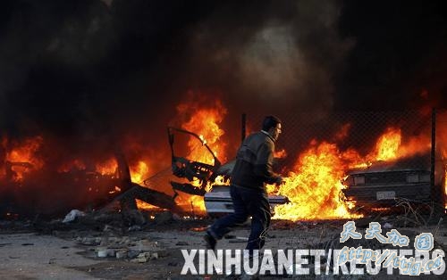 12月15日,在伊拉克首都巴格达,一名市民从爆炸袭击地点燃起的大火旁跑过。巴格达15日再次遭到一连串爆炸袭击。新华社/路透