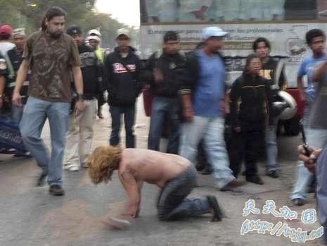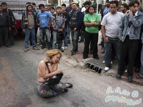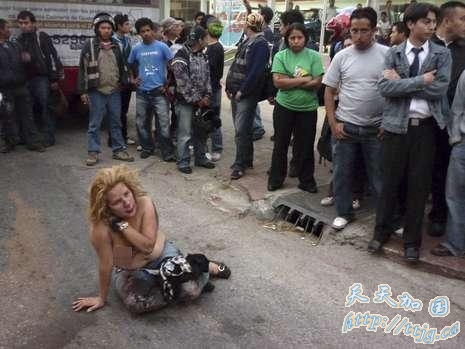 据德国《图片报》12月17日报道,15日危地马拉一名女子遭人殴打后赤裸上身矗立街头,她被指伙同三名男子在巴士上实施武装抢劫,三名男子逃跑后,愤怒的群众对她施加私刑。