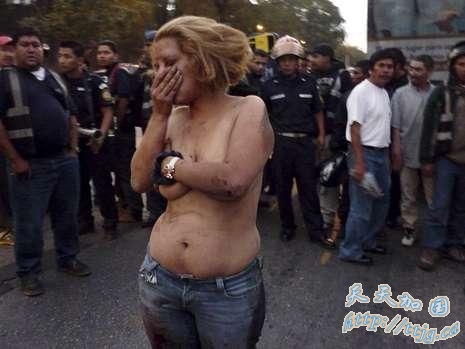 危地马拉一名女子遭人殴打后赤裸上身矗立街头