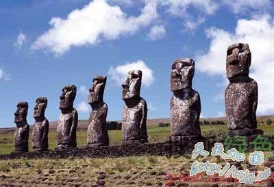 复活岛,被称为是世界上最神秘的地方。在这个岛上有许多世界闻名的石像。这些大石像均面朝天空,仿佛在祈求什么。令人诧异的是,除了石像自己,没有人知道它的雕刻者是谁,更没有人知道20米高90吨重的石像是怎么完成的。更奇怪的是,科学家曾以遗留下来的原始石器去刻坚硬的石像,结果石器反而碎裂了。