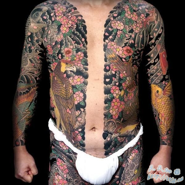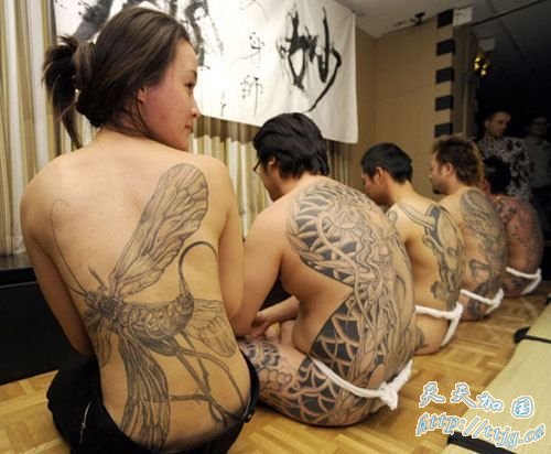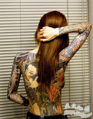 日本人称纹身为“入墨”。他们在人体上刺上浮世绘的作品,是一种如花道般精美的民间工艺。日本纹身最典型的特点是覆盖全身的纹身图像。这些图像多取自于历史或神话传说中的人物形象,表现出日本传统的艺术风格。这造就了日本纹身艺术在当今世界上独树一帜的特色。