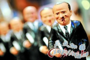 除了遭袭击,老贝今年的丑事还真不少。今年意大利市场,以总理贝卢斯科尼及其性丑闻女主角为模型制作的各种玩偶异常走俏。这些热销的政治丑闻玩偶包括“贝氏性丑闻”曝光后三天两头“爆料”的应召女郎达达里奥、贝卢斯科尼离婚风波的“导火索”——18岁女模诺埃米以及与贝卢斯科尼闹离婚的妻子拉里奥。