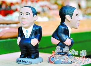 也不是所有的玩偶都会利用丑闻恶搞名人。眼下,西班牙推出了一套名为“排便者”的陶制玩偶,令人忍俊不禁。每年的圣诞节来临,加泰罗尼亚人将“排便者”藏起来请朋友来寻找,加泰罗尼亚人认为“排便者”是在给大地施肥,所以把它们看成来年丰收繁荣的象征。这些名人不光包括奥巴马等多国政要,还有诸如C罗、中村俊辅这样的足球明星。