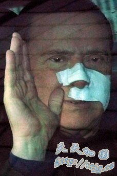 现年73岁的贝卢斯科尼于13日在意大利米兰参加一次政治集会时遭到塔尔塔利亚的袭击,塔尔塔利亚用一个米兰大教堂模型掷向贝卢斯科尼,将他打得鼻骨骨折、牙齿脱落、嘴唇开裂。