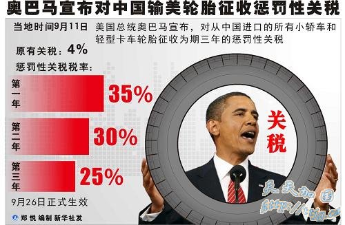 资料图:美总统奥巴马宣布对中国轮胎特保案实施限制关税
