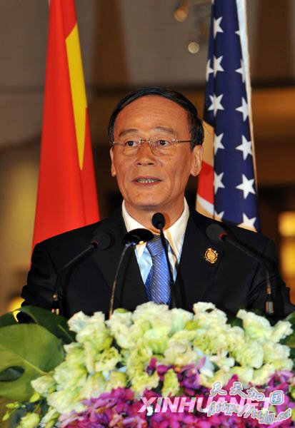 资料图片:10月28日,中国国务院副总理王岐山在欢迎酒会上致辞。10月28日至29日,第二十届中美商贸联委会会议在杭州举行,中国国务院副总理王岐山与美国商务部部长骆家辉、贸易代表柯克共同主持会议。新华社记者 王定昶 摄
