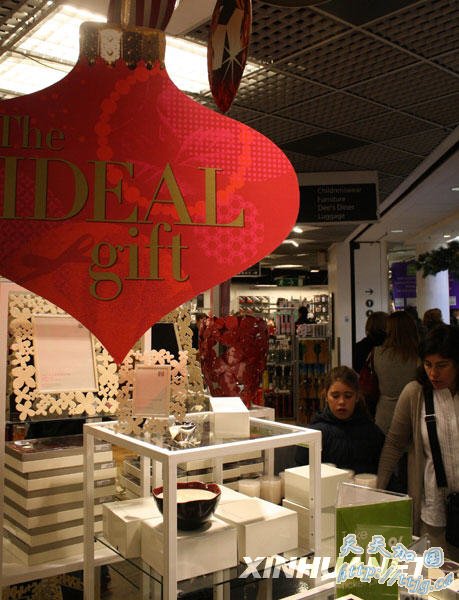 12月12日,顾客在英国伦敦著名的购物街——牛津街的一家百货公司内采购圣诞礼物。新华社发