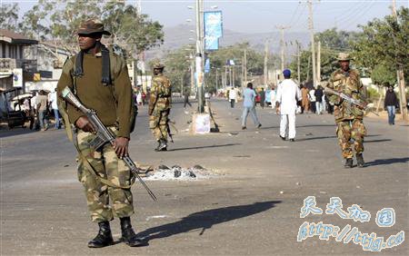 资料图片:街头巡逻的尼日利亚士兵