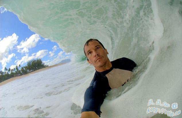 深处巨浪之下,克拉克·利特尔冒着生命危险捕捉精彩镜头。据报道,为了拍摄这些绝美的画面,利特尔每天要在海水里泡上6个小时。凭借着良好的冲浪技巧,利特尔总能找到最好的拍摄角度。