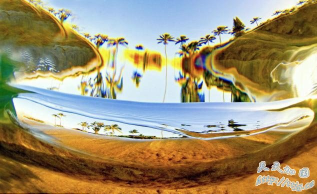 海市蜃楼:潜入海水下,观看金色的沙滩时,会产生一种海市蜃楼般奇妙的美景