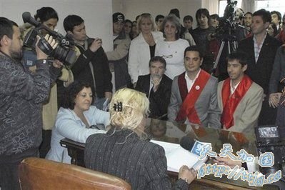 这对新人在民政局官员和媒体的见证下合法结婚。