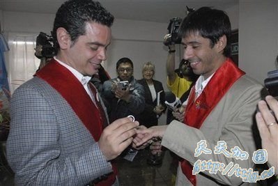 国际在线12月29日报道 据美联社12月29日报道,阿根廷两名同性恋男子28日在民政局登记结婚,成为拉丁美洲首例合法的同性恋婚姻。