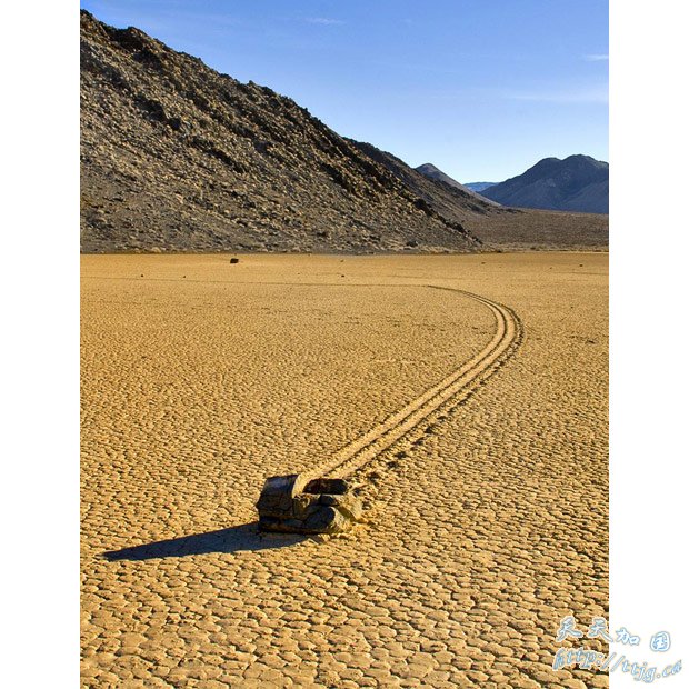 在静得吓人而且非常热的美国加州“死亡谷”内,一块重约250斤的岩石,沿着沙漠自动缓慢滑行,这件奇异的现象让科学家们匪夷所思。巨大岩石一年自动滑行的距离甚至能超过320米。