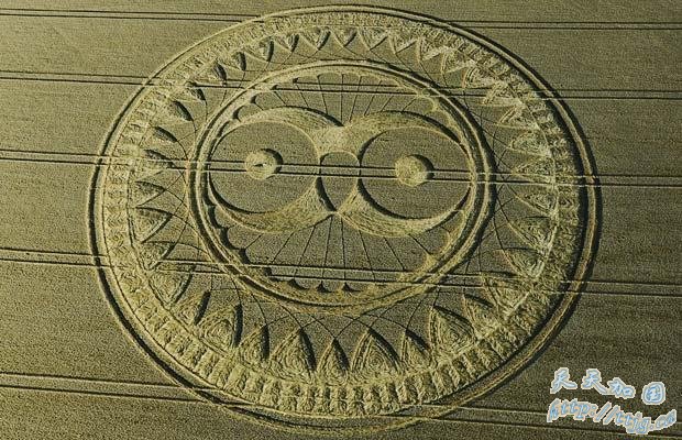 英国威尔特郡一块麦田出现巨大麦田圈,酷似《哈里·波特》电影中那只神奇的猫头鹰“海德威格”。
