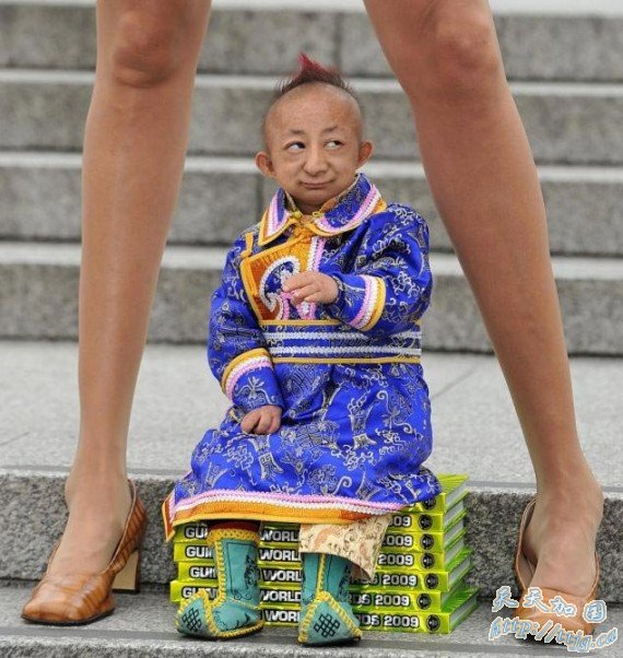 世界最矮的人。中国的何平平是现在世界上已知的最矮的成年人。中国内蒙古一组医生2008年3月22日测量他的身高为74.61厘米,他随后被授予世界最矮小成年男性称号。
