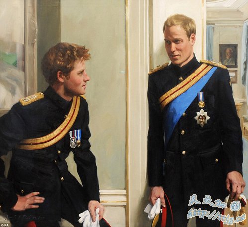 中新网1月7日电 据英国《每日邮报》消息,英国皇室27岁的威廉和 25岁的哈里王子手足情深,由女画家 Nicky Philipps花两年时间,替两兄弟画的首张官方肖像,昨天在国家肖像画廊展出。画中可见,两兄弟身穿军装互相对望,两人眼神交流,尽在不言中。
