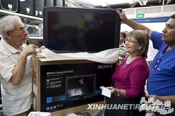 1月9日,委内瑞拉首都加拉加斯的一个家用电器店,顾客在挑选家用电器。新华社/路透