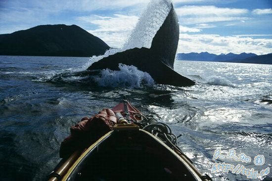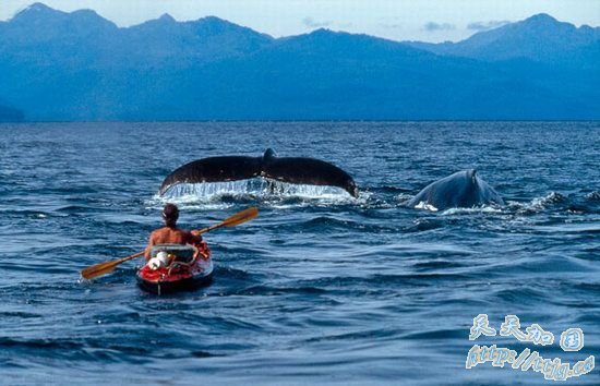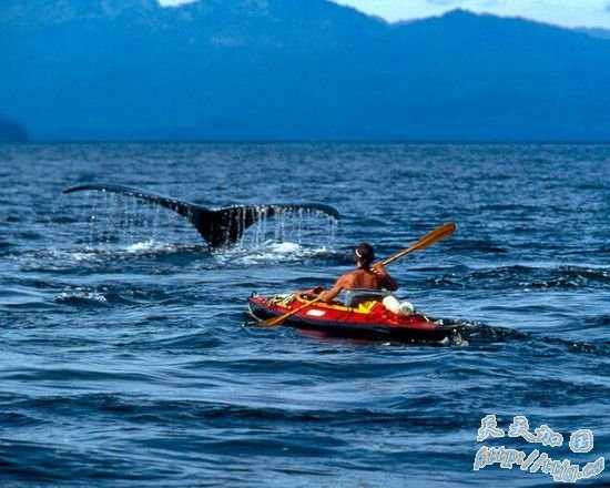 图4、“多少年来,我觉得我跟鲸鱼的那种联系越来越近,为了与它们‘邂逅’,我不得不忍耐饥饿。同时,我的耐力也越来越强,有时候为了跟上它们的脚步,我一天要划近50公里。”