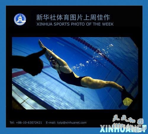 1月6日,教练刘常荣在水下视窗外用手势指导国家队队员刘娇进行蹼泳训练。当日,为备战2010年世界杯等一系列重大国际赛事,国家蹼泳队继续在国家体育总局湛江潜水运动学校进行冬训。