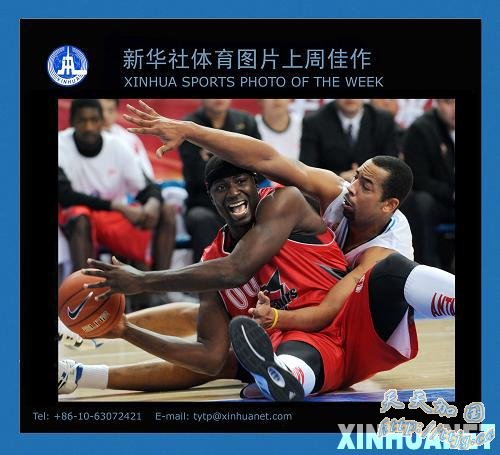 1月8日,辽宁盼盼队球员奥德杰(左)与福建SBS队球员麦考伊倒地争抢。当日,在2009-2010赛季CBA联赛第九轮的比赛中,福建SBS队主场迎战辽宁盼盼队。