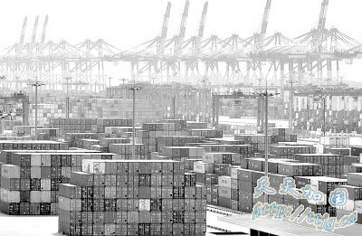 上海洋山深水港码头一景。上海市交通运输和港口管理局发布的数据显示,预计2009年上海港的货物吞吐量将完成5.8亿吨,基本与上年持平。新华社记者 陈飞 摄