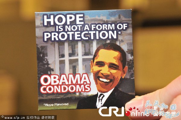 2010年1月13日消息,美国总统奥巴马自从竞选总统之初就一直是各大商家制造噱头的焦点,前段时间的风衣广告风波尚未完全平息,一家网站(obamacondom.com)又推出了以他的形象为招牌的避孕套。同时,共和党前副总统候选人佩林也未“幸免”。