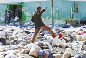 太子港总医院的拉罗什医生说,医院的太平间里早已放不下任何尸体,太平间外也已堆积了1500具。在人力不足的情况下,甚至出动垃圾车协助载运遗体,也让人类最基本的尊严变得荡然无存。