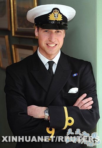 这是威廉王子身着英国海军制服的照片(摄于2008年5月9日)。