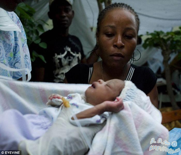正在医院接受治疗的伊丽莎白 国际在线专稿:海地地震发生后,废墟下不断有被困者被救出,生命的奇迹接连不断地上演。日前,来自法国的救援人员从倒塌的房屋下救出一名约3周大的女婴,在废墟下埋了8天后,小家伙奄奄一息,但身体丝毫未受伤,依然存活。这个奇迹很快在太子港传开。 1月12日地震发生时,11天大的伊丽莎白·乔塞特(Elisabeth Joassaint)正在家中二楼的卧室中酣睡,妈妈刚刚给她喂完奶。地震发生后,伊丽莎白一家的房子倒塌,家人全部都在房子外,唯独伊丽莎白被埋在废墟中。由于孩子太小,家人都悲痛地以为伊丽莎白已经不幸夭折了。 日前,来自法国的一队救援人员在清理伊丽莎白一家的房子时,忽然听到极其微弱的哭声。救援人员慌忙在废墟中寻找,发现了已经奄奄一息的伊丽莎白。当时她已经极度虚弱,但身体没有丝毫损伤。原来,房屋倒塌后奇迹般地形成了一个狭小的空间,伊丽莎白躺在床上,没有被任何物体压到,侥幸存活下来。 救援人员迅速将伊丽莎白幸存的消息通知她的家人,伊丽莎白的妈妈惊呆了,因为这几天她一直万分悲痛,早就认定女儿已经不幸夭折。 |