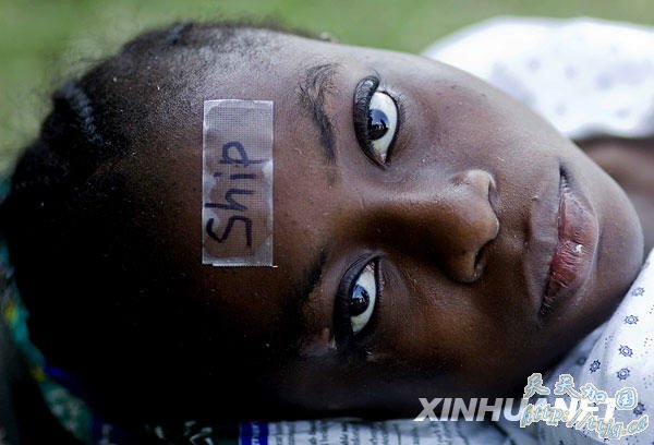 1月21日,在海地首都太子港,一名在地震中受伤的儿童等待转院。