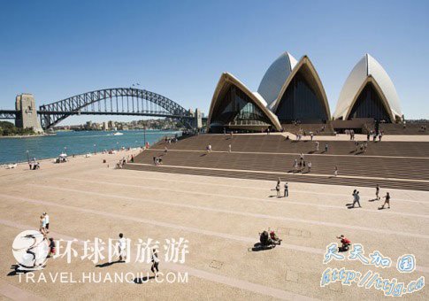 知名景观:悉尼海港大桥及其附近水域、悉尼歌剧院和邦蒂海滩。