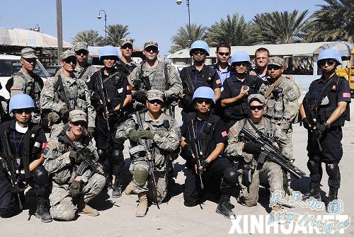“合作愉快。”“祝你好运。”中国防暴队员和美军士兵互道珍重,各自去执行新的任务。