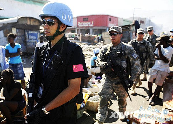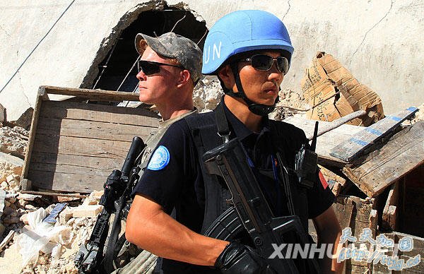 受联合国驻海地稳定特派团(联海团)指派,中国赴海地维和警察防暴队28日上午首次与在海地执行援助任务的美军在太子港执行联合巡逻任务。