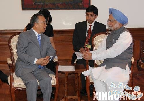 2009年8月8日,印度总理辛格(右)在新德里会见中国国务委员、中印边界问题中方特别代表戴秉国。 新华社记者吴强摄