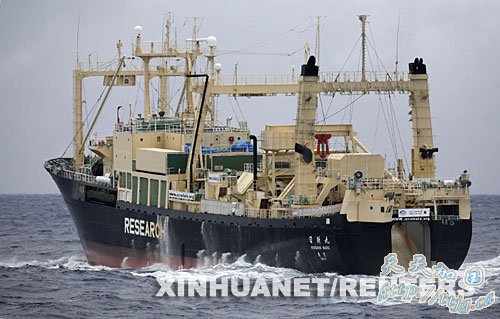 1月13日,日本捕鲸船“日新丸”号在南太平洋海域航行。绿色和平组织12日说,他们已经在南太平洋海域发现了日本捕鲸船队,正在密切追踪这一船队。绿色和平组织还通过网站表示,如果日方开始捕鲸行动,抗议者将驾驶充气船驶入捕鲸船和鲸鱼中间。国际捕鲸委员会禁止商业捕鲸活动,但并不禁止以科研为目的的捕鲸。过去20年中,日本打着“科研”旗号在南极海域共捕杀了7000头小须鲸。 新华社/路透