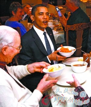 美联社2日报道,奥巴马在“威克斯太太餐厅”享用一顿大餐,包括炸鸡、通心面、奶酪、奶油玉米、烤猪肉、蓝莓布丁和香蕉布丁。