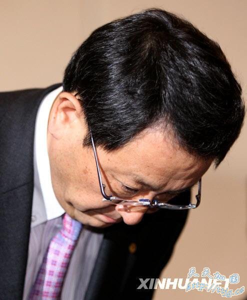 3月1日,丰田汽车公司社长丰田章男在北京举行的说明会上。当日,丰田汽车公司社长丰田章男在北京召开说明会,就丰田汽车实施的大规模召回给中国消费者带来的担心和影响3次表示道歉。他提出将进一步强化安全、质量体系,尽早挽回消费者信心。新华社记者 陈建力 摄