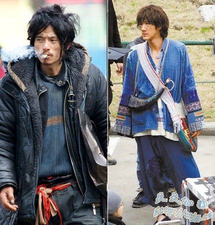 王力宏日前在自导自演的处女作《恋爱通告》片场一亮相,就引起观众的热议 ,称他是“犀利哥 ”附身。虽然是演歌唱巨星,但王力宏在拍摄现场穿得很有“特色”。据说走得是民族路线,不仅服装很有民族风情,衣服还有点破破烂烂,气质酷似目前走红网络的“犀利哥”。