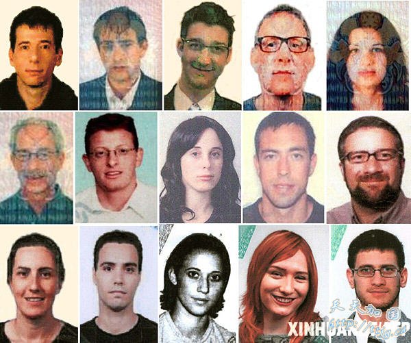 这张2月24日阿联酋迪拜警方公布的拼版照片显示的是新增的15名暗杀马巴胡赫的嫌疑人。迪拜警方24日发表声明说,涉嫌暗杀巴勒斯坦伊斯兰抵抗运动(哈马斯)领导人马哈茂德·马巴胡赫的嫌疑人数已升至28人,其中包括先前落网的被关押在迪拜的2名巴勒斯坦人。新华社/法新 [资料图片]