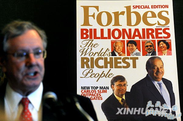 3月10日,《福布斯》杂志总编辑史蒂夫·福布斯在美国纽约出席新闻发布会。当日,《福布斯》杂志在纽约总部举行新闻发布会,揭晓2010年度亿万富豪富豪榜单,墨西哥电信大亨卡洛斯·斯利姆·埃卢超过微软创始人比尔·盖茨荣登榜首,这也是16年来美国人首次失去全球首富头衔。新华社记者申宏摄 据《扬子晚报》报道,美国《福布斯》杂志10日公布最新一期世界富豪榜,墨西哥电信大亨卡洛斯·斯利姆以535亿美元身家击败美国微软公司创始人比尔·盖茨(530亿美元),成为新首富。斯利姆或许没有盖茨那么有名,但他比后者更富有,也更节俭,或者说是吝啬。 斯利姆生活节俭,几十年如一日。斯利姆出生于一个贫困的黎巴嫩移民家庭,富裕以后他也不改勤俭本色。他戴一块廉价的塑料电子表,至今仍使用父亲当年给他的记账本(父亲曾让他记账管理每周的5比索零花钱),他不喜欢用电脑,并要求顾问将工作汇报写在纸上。 和俄罗斯富豪纸醉金迷的生活相比,斯利姆堪称吝啬。前者可以为了自己喜欢的棒球运动而出手买下纽约扬基队,但后者则满足于做一名旁观的粉丝。斯利姆还喜欢晚上读史书,尤其喜欢成吉思汗的历史书。他在墨西哥城的老房子里住了40年,那里只有6个房间,一个小游泳池,但房间里挂满了雷诺瓦、里维拉、梵高还有他最喜欢的艺术家罗丹的大作。 斯利姆热衷于控制成本,不喜欢举债经营。在该公司的员工手册上有他亲自撰写的带有中国儒家风格的警句:“骄奢生于富贵”。 和比尔·盖茨相比,斯利姆在慈善事业同样很小气。最近,他宣布出资60亿美元创立第三个基金会,支持教育、医疗和经济发展等。但2007年,他曾直白地表示自己无意“成为到处送礼物的圣诞老人”。更早以前,在纽约一次宴会上,他说,别人想给孩子留下一个更美好的世界,但他更想“为自己的世界留下更好的孩子”。 斯利姆有三个儿子,如今他们都已在家族商业帝国中独当一面。斯利姆在13年前的心脏手术后开始逐渐退出日常管理工作。现在,他只是每周一和三个儿子以及两个女婿在家里碰一次头,讨论一下家族生意。 俄亿万富翁“卷土重来” 美国《福布斯》杂志10日公布2010年度资产总额超过10亿美元的全球富豪榜。与一年前相比,俄罗斯上榜人数几乎翻倍,首富则换了“新面孔”。俄罗斯富豪主要集中在原材料、金融和房地产领域,即2008年以来金融危机“重灾区”。由于价格下跌、资产缩水,2009年俄罗斯上榜人数骤减55人。随着经济走向复苏,市场反弹,去年“落榜”的富豪们再次上榜。钢铁业巨头弗拉基米尔·利辛今年以158亿美元资产跃居俄罗斯首富,全球排名第32位。