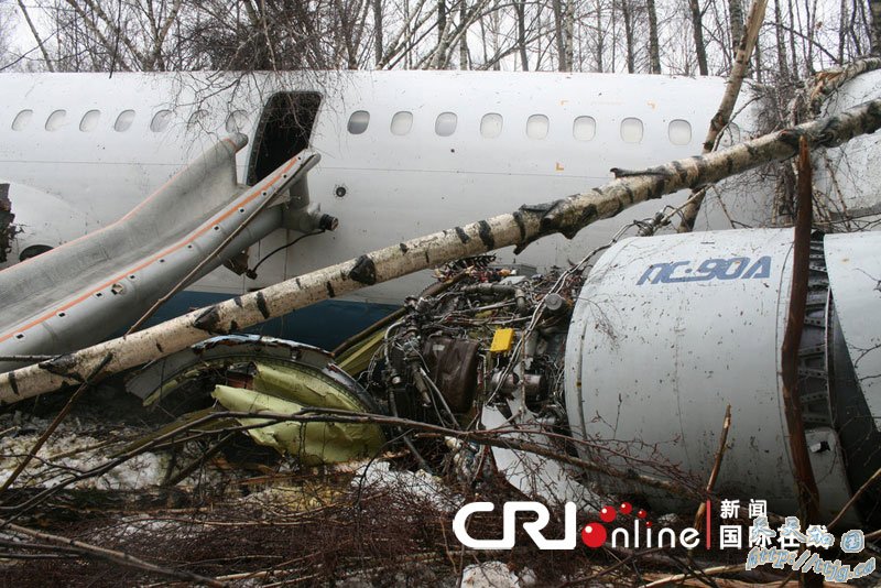 2010年3月22日,一架俄罗斯客机当天试图在莫斯科多莫杰多沃国际机场降落时不幸坠毁在树林里,机上8名机组成员受伤。