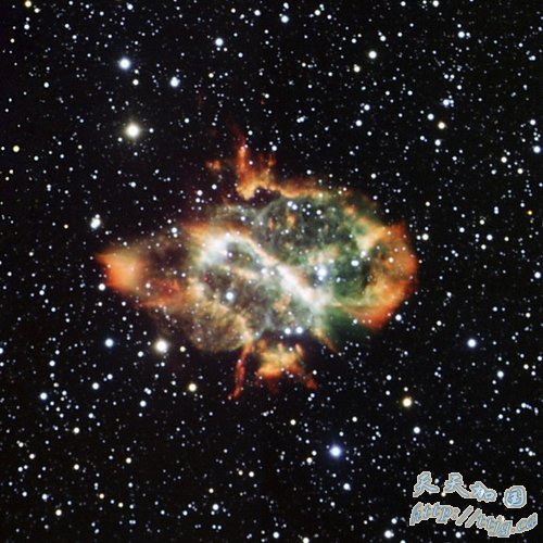 据悉,这幅图片是由欧洲南方天文台在智利拉息拉天文台(La Silla Observatory)所拍摄的,使用现在已经退役的微光显微镜设备,通过不同的窄带滤波器曝光后结合而成的,不同的窄带滤波器捕捉到不同的化学元素发出的光线,分别为氢、氧和氮等。