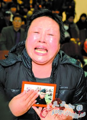28日,一名失踪士兵的家属手捧亲人照片,悲伤得泪流满面。 韩国军舰失踪的46名士兵仍下落不明