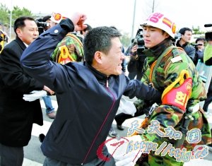 部分情绪失控的家属与维持秩序的官兵发生了肢体冲突。