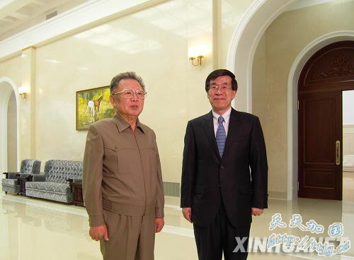 3月29日,朝鲜劳动党总书记、国防委员会委员长金正日(左)在平壤会见并宴请了新任中国驻朝鲜大使刘洪才。双方就中朝关系等问题进行了亲切、友好的谈话。 新华社发(中国驻朝鲜使馆提供照片) 新华网平壤3月30日电(记者 高浩荣 赵展)朝鲜劳动党总书记、国防委员会委员长金正日29日在平壤会见并宴请了新任中国驻朝鲜大使刘洪才。双方就中朝关系等问题进行了亲切、友好的谈话。 刘洪才转达了胡锦涛总书记对金正日总书记的亲切问候和良好祝愿。金正日表示感谢,并强调朝中友好关系是两国老一辈革命家亲手缔造和培育的,经过历史的考验,必将得到进一步巩固和发展。 朝鲜国防委员会副委员长、人民武装力量部部长金永春,劳动党中央行政部长张成泽,国际部长金永日,外务省第一副相姜锡柱等参加了宴会。