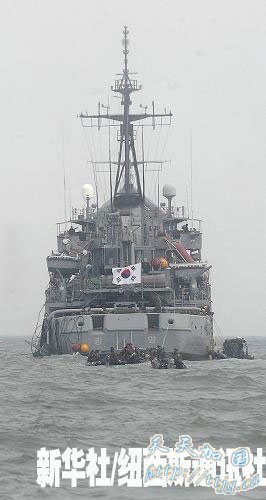 3月30日,韩国海军“光阳”舰在“天安”号警戒舰沉没的白翎岛附近海域展开搜救工作。当天,26日沉没的韩国“天安”号警戒舰的搜救工作继续进行。韩国军方有关人士说,虽然海难救援队员正在试图进入“天安”号舰尾内部进行搜救,但困难重重,可能需要较长时间。新华社/纽西斯通讯社