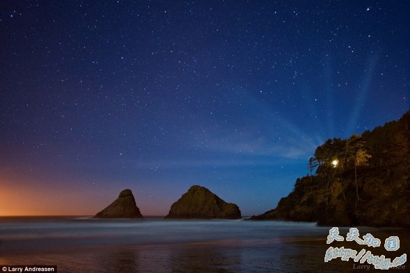 “灯塔和星星”赢得竞赛亚军。这是在美国俄勒冈州海岸拍摄的,显示了星空和一座灯塔发射出的强烈光芒。
