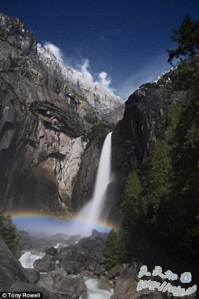 “美丽的夜空”组别一等奖归属于“满月彩虹”,是摄影师在加州约塞米蒂瀑布拍摄的。